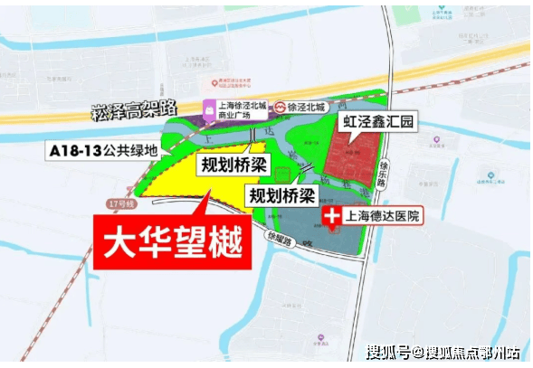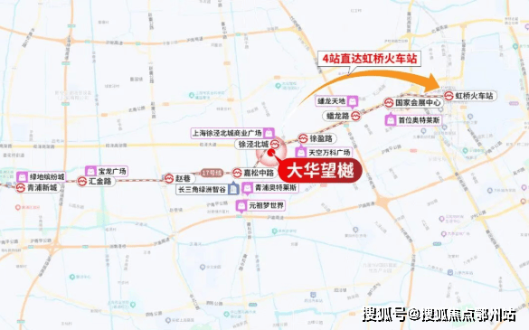 区位与配套方面,项目的交通便利性是核心亮点之一.其与17号线徐泾北城站直线米,目前虽受河流阻隔需绕行,步行约1.5公里,但项目东北侧已规划建设专用人行桥,未来将直通地铁站二楼,届时可实现“正地铁房”的便捷接驳,大幅度的提高通勤效率.借助17号线站可达徐盈路天空万科广场,2站直达蟠龙古镇商业,4站抵达虹桥枢纽,跨区出行十分便捷;自驾方面,经崧泽大道可快速接入沈海高速、沪渝高速,15分钟直达虹桥天地、国家会展中心,25分钟抵达静安寺,融入长三角一小时生活圈.